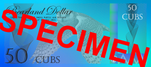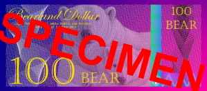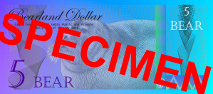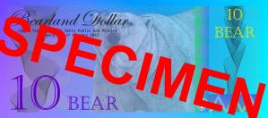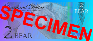 All notes, regardless of type, are recognized as legal tender for all debts, public and private within Bearland and are valued at a fixed standard of 10 Bear (BBR) per troy ounce of silver. The Treasury of Bearland carefully manages the life cycle of its currency. Every note issued is formally entered into the public record at the time it leaves the Treasury, and any note withdrawn from use is accounted for, recorded, and then destroyed under secure procedures. The symbol of Bear is Ƃ, just like the symbol of USD is $.